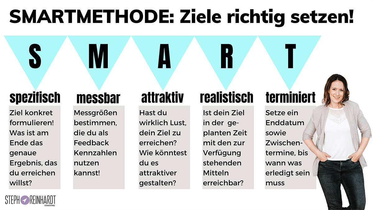 Ist mega einfach und mega effektiv. Also am besten direkt mal für dein Ziel ausformulieren. und gerne auch grafisch in drei Kreisen darstellen: